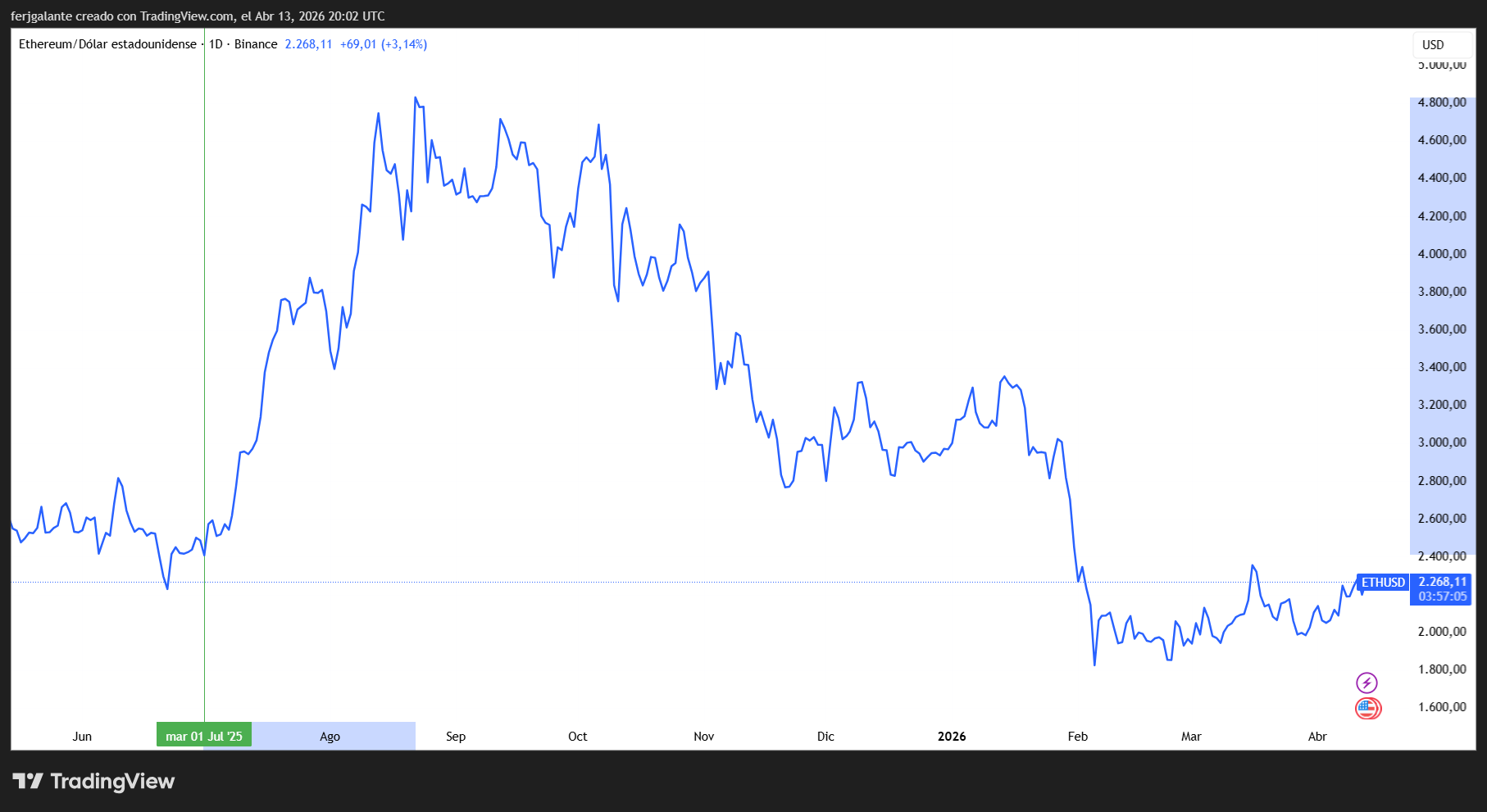 ¿Qué pasó desde entonces? Los dos meses siguientes literalmente voló: más que duplicó su precio. Pero a partir de la fuerte corrección que comenzó en el mercado cripto en octubre del 2025, liderado por Bitcoin, devolvió prácticamente toda la suba en los meses siguientes. Y hoy se encuentra a un precio similar a cuando escribimos aquellas líneas. ¿Estamos ante una nueva oportunidad? Vamos a analizarlo.